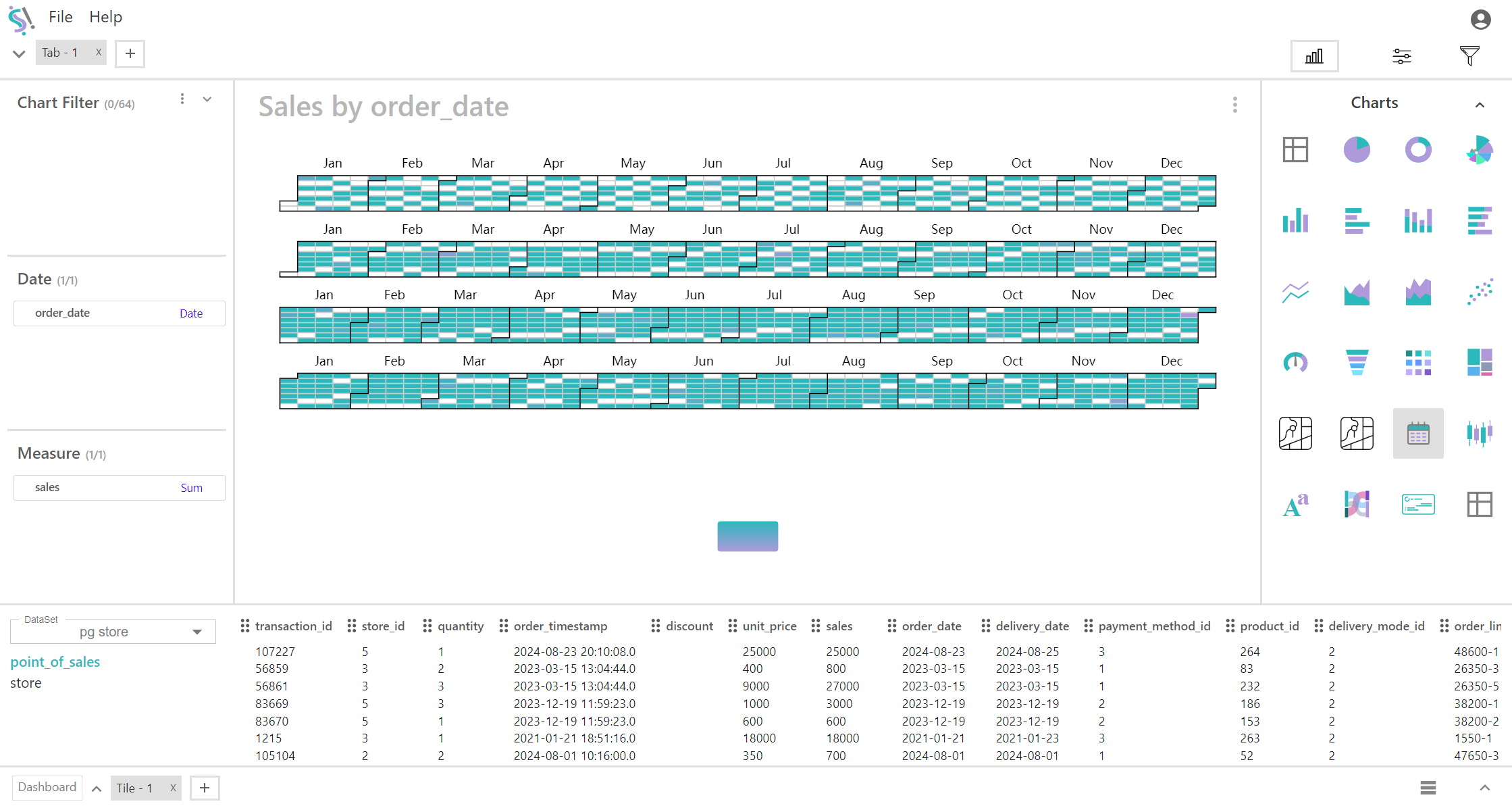 A calendar chart is a type of visualization that displays data across a calendar format. It helps to visualize patterns and trends over time, especially focusing on daily data. Calendar charts are useful for identifying seasonal trends, activity patterns, and variations over days, weeks, or months.