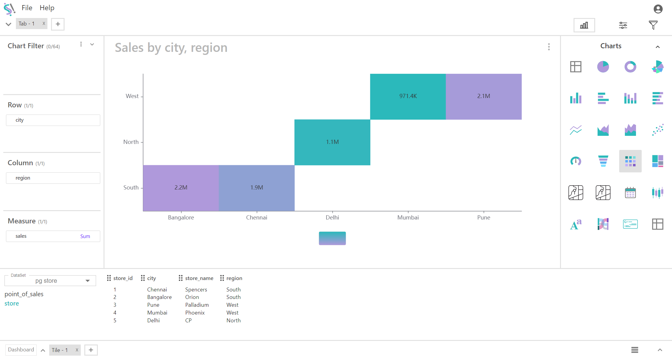 2. Represents the other dimension or aspect of the data. In this case, there is only one column. Positioned vertically in the heat map. Provides the context or category for the measure in that column. It complements the row to identify the specific data point.