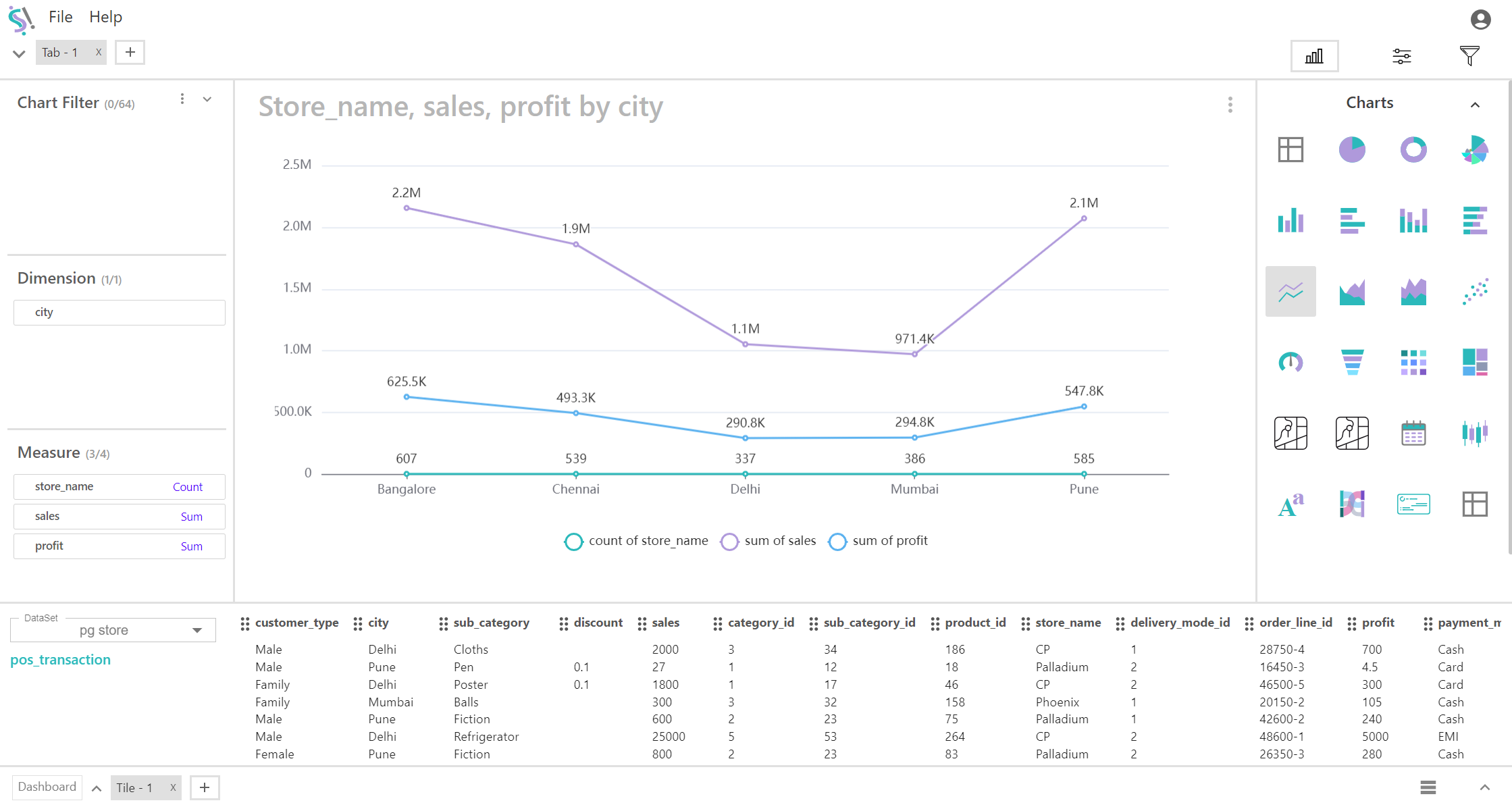 Represents the numerical values plotted along the Y-axis. Reflects different sets of data points that are plotted as individual lines. Each line represents a measure, allowing you to track and compare these measures across the dimension.