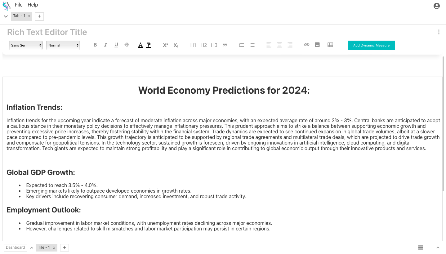 Incorporates data-driven values that can change based on input or conditions. These measures are updated in real-time to reflect current data or user interactions.