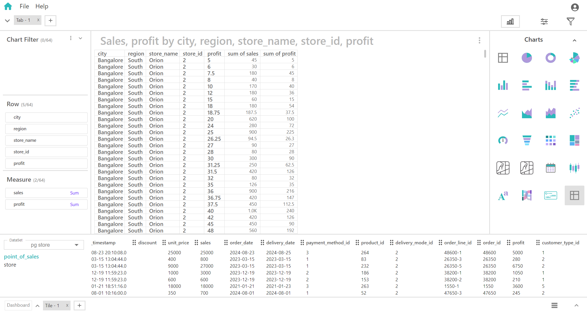 You can display a maximum of 64 Rows and 64 Measures in your chart/table.